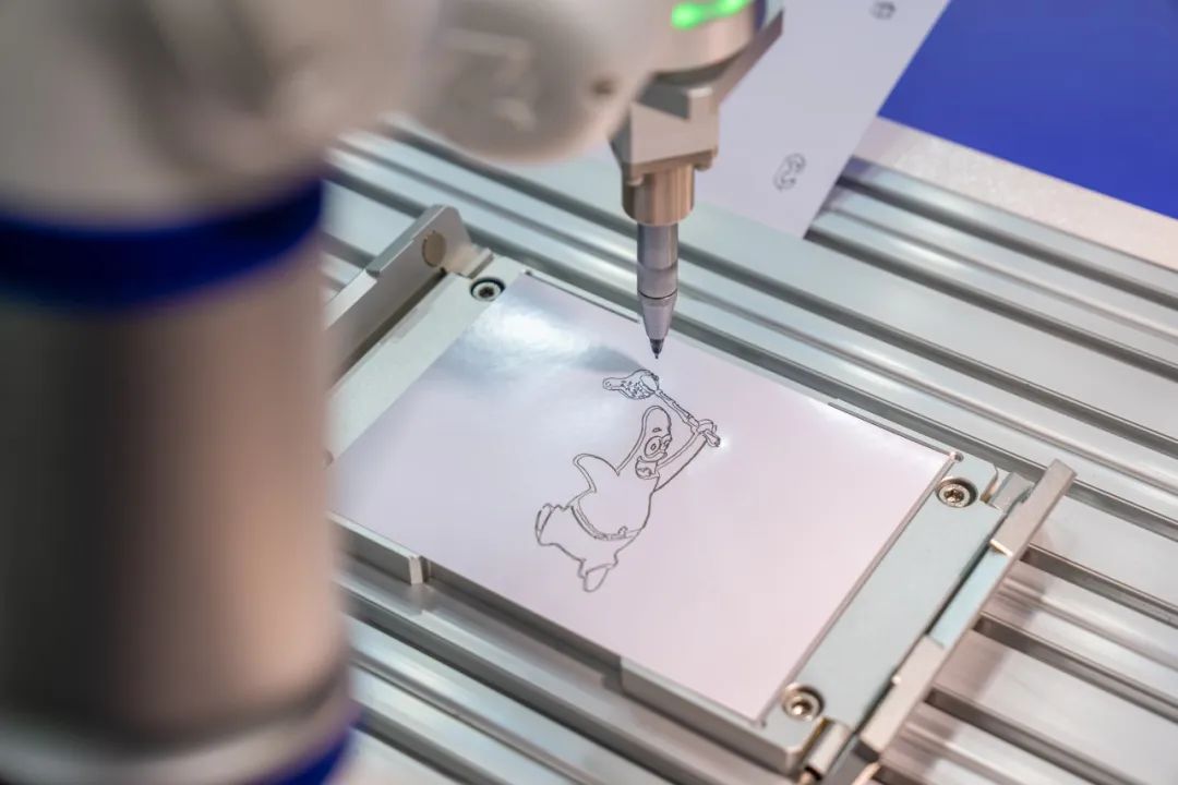 针对AI课程教学、人机互动表演等教育行业场景,米兰·(milan)中国绘画机器人搭配摄像头及上位机,可拍摄图像并将其轮廓转换为机器人轨迹数据,通过SDK接口向机器人发送。机器人对接收到的轨迹数据进行实时样条插补,解决上位机轨迹数据不连续、通信延迟不可控的问题后,平稳柔顺地完成绘画动作。