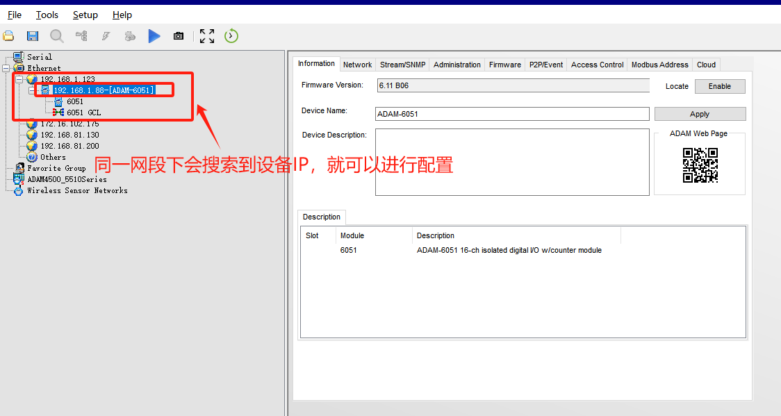 电脑IP与模块的IP设置为同一网段,然后打开软件,按下图操作开始进行