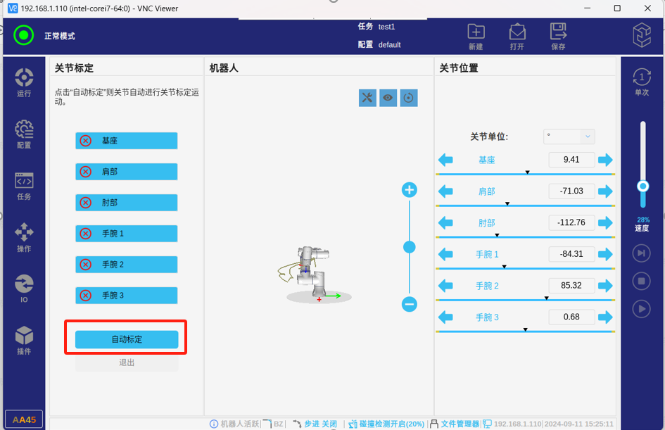 如需在本地模式下进行手动标定,即可在弹出自动标定页面后,点击自动标定按钮进行标定,各轴会小范围自动移动,完成后各轴为黄色状态退出即可。