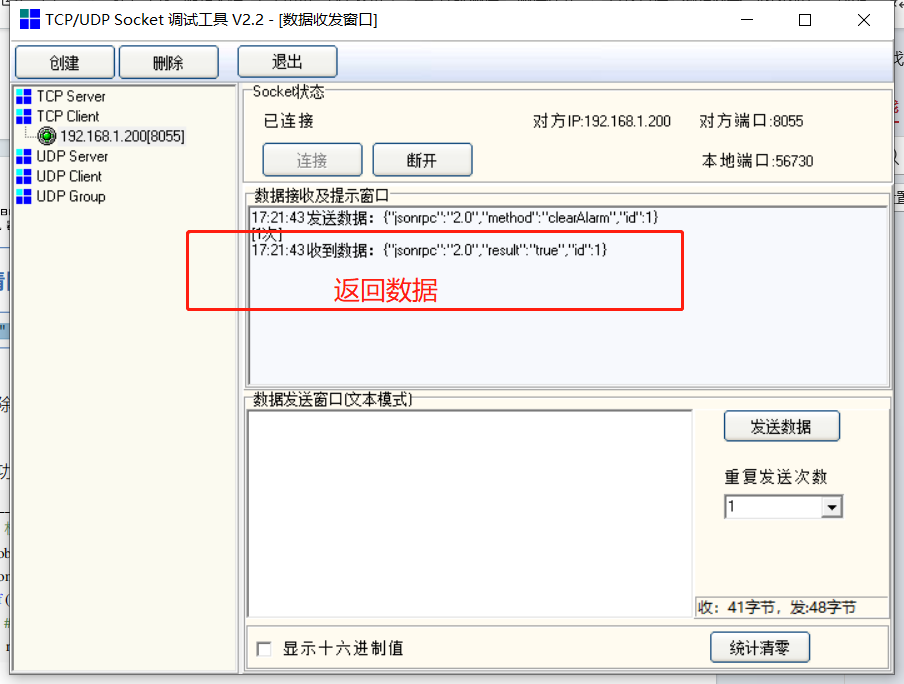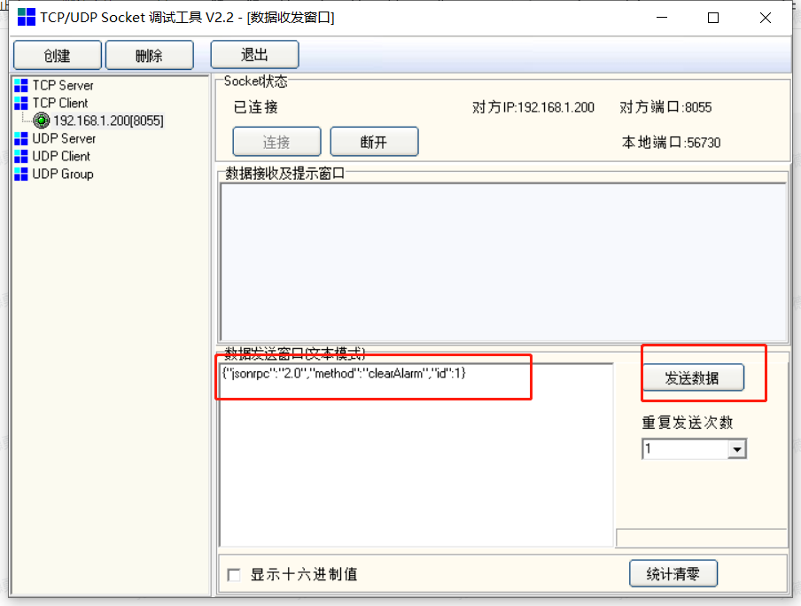 发送数据:{"jsonrpc":"2.0","method":"clearAlarm","id":1}