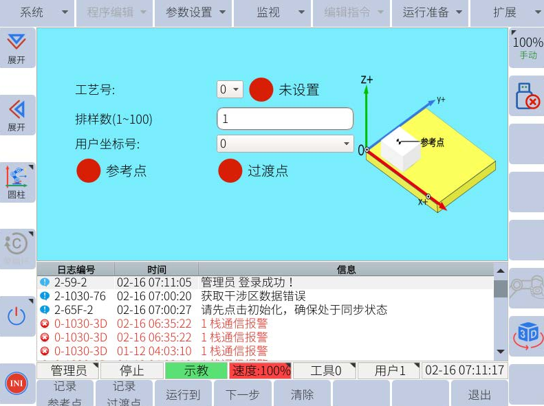 5. 参考点:即托盘上第一个工件的摆放位置,以后每个工件的坐标以其为基准进行偏移计
