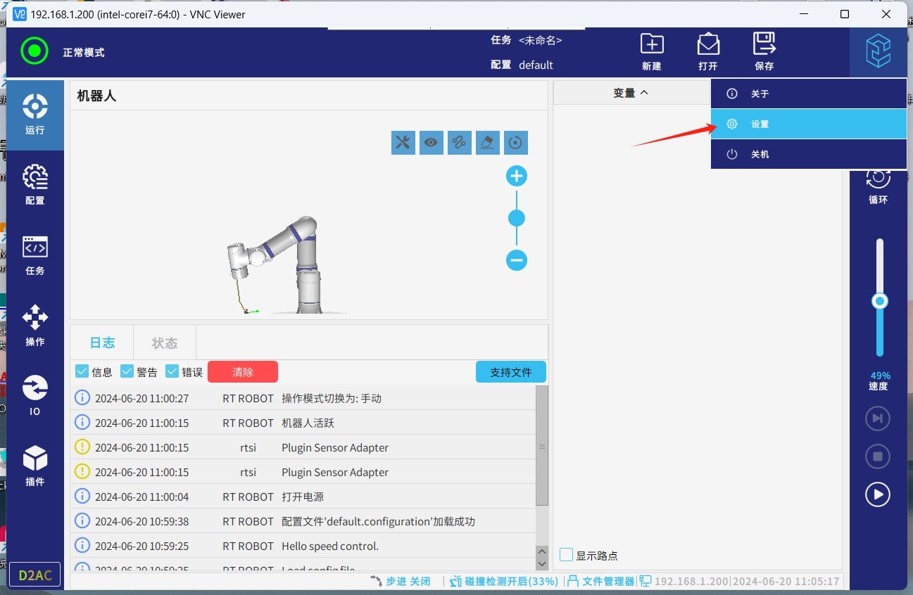 注:不同配置下的任务,在切换时也会连同配置一起切换,但要注意的是在切换不同配置下的任务时,机器人会下电。