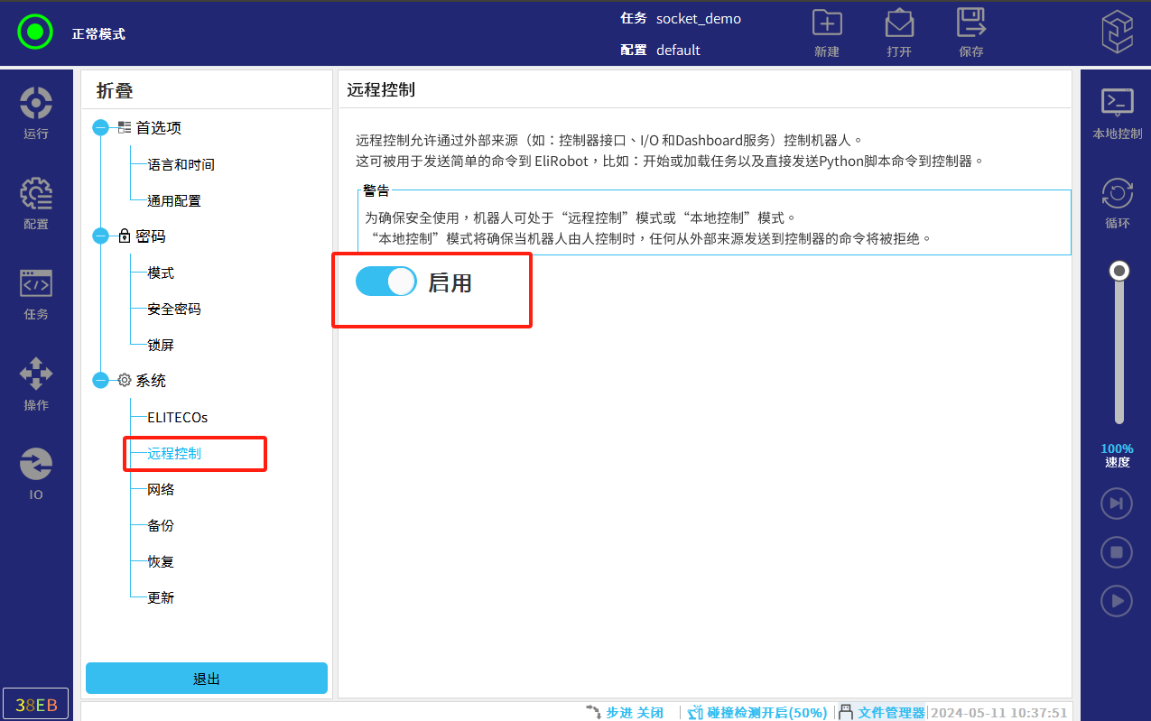 外部设备可以往30001直接发送机器人脚本,机器人处于远程模式,机器人就会运动。