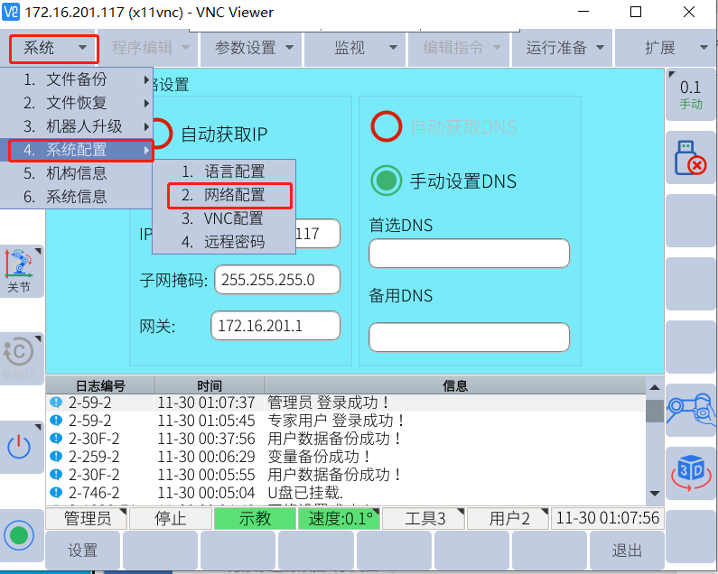 1) . 机器人IP设置