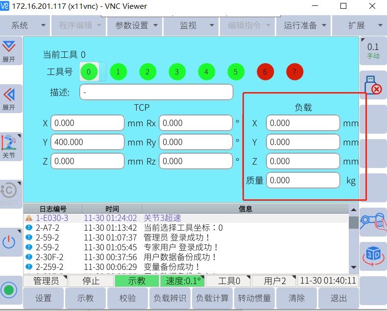 工具负载和重心的设置: