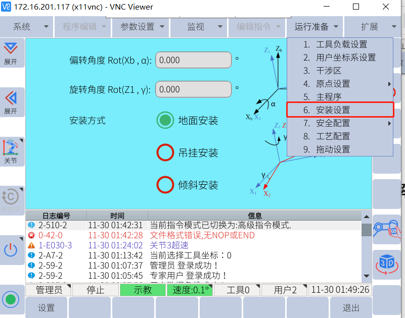 倾斜安装:当机器人基座与大地不平行时,我们需要选择倾斜安装。