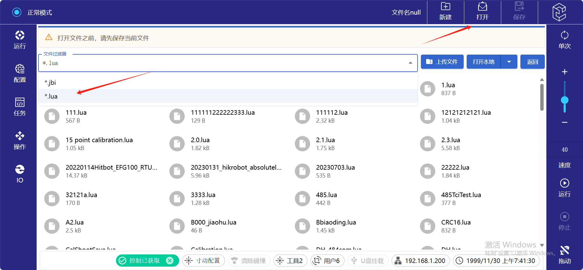 1. 推荐使用Web示教器进行LUA编程,详细使用Web示教器可以咨询官方技术文档。