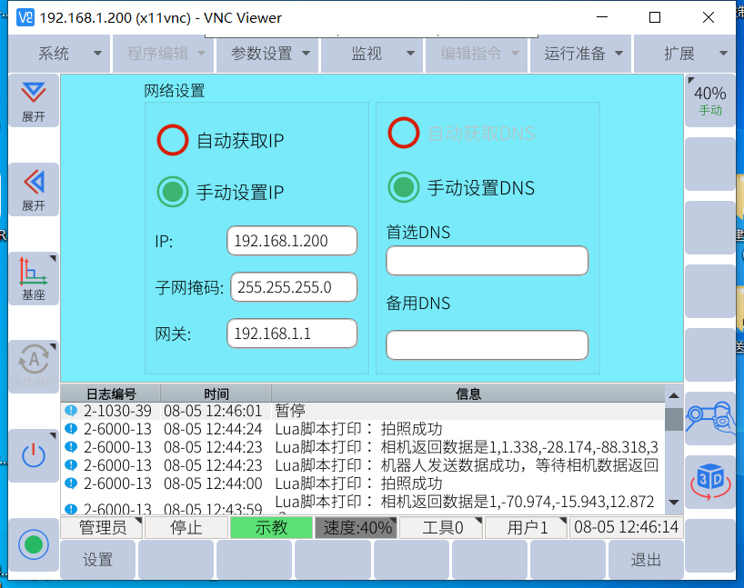 可知返回数据为2,机器人在远程模式,与实际一致,即满足需求