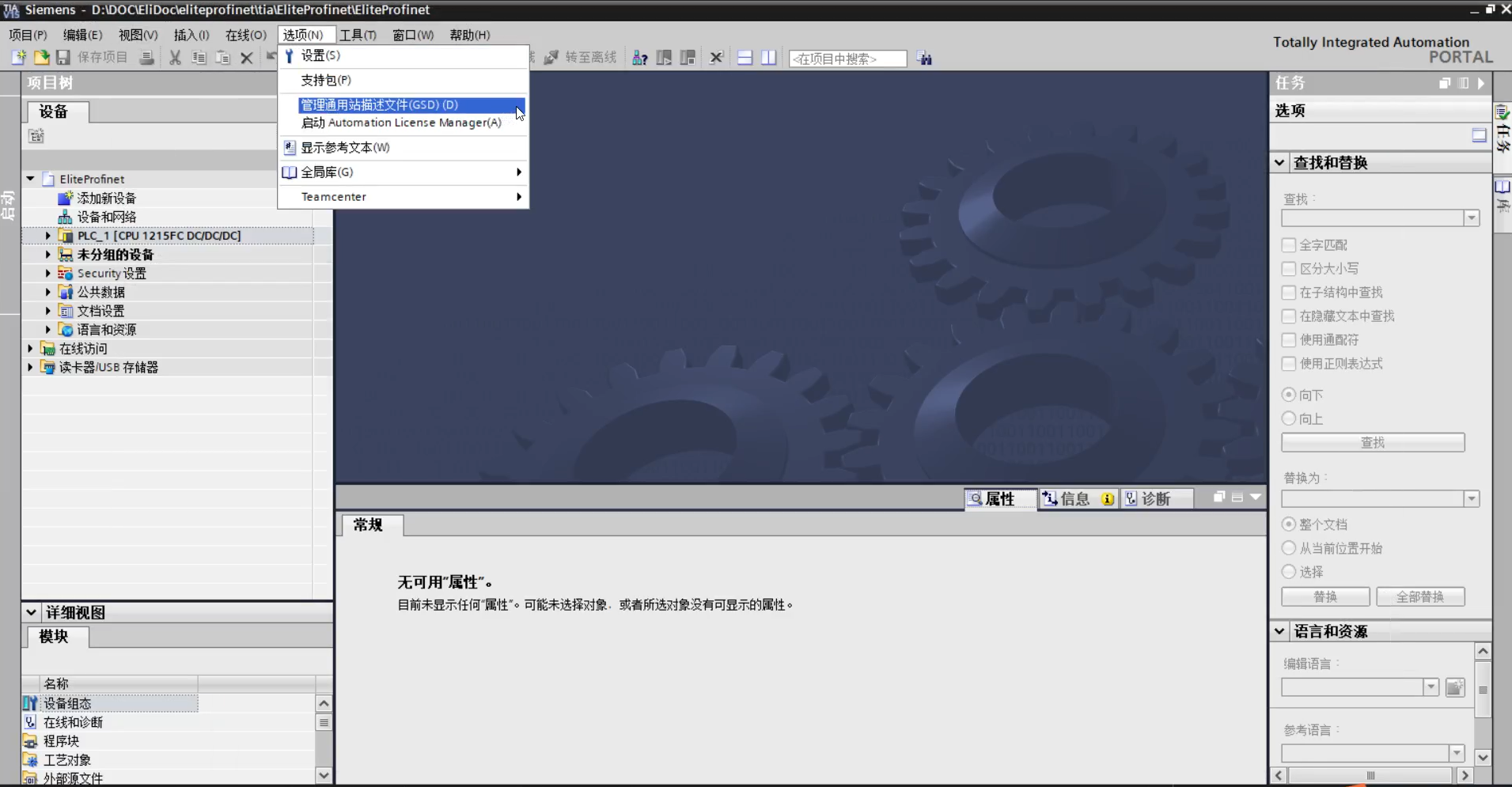 1)双击左侧项目树中的“设备和网络”,如图 3-2(a)所示;双击或拖拽右侧硬件目录 中,具体路径为:“其他现场设备> PROFINET IO> IO> ELITE> ELITE CS> Elite Robot CS Device”,如图 3-2(b)所示。