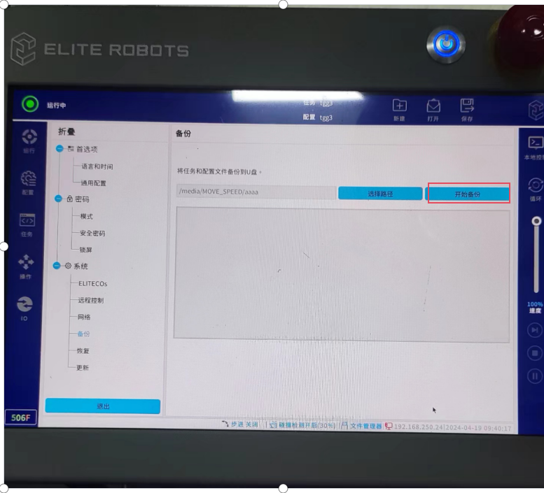 1、 备份功能导出的主要文件为机器人程序、配置文件(同型号可通用)以及当前机器人零位、DH参数(不通用);
