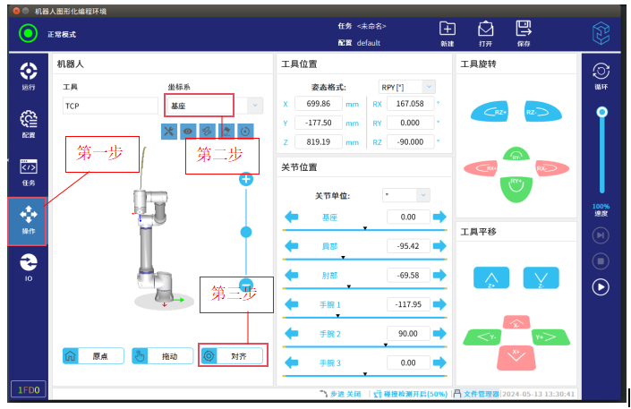 2.4.1将机器人移至机器人默认零位,如图-8操作步骤所示